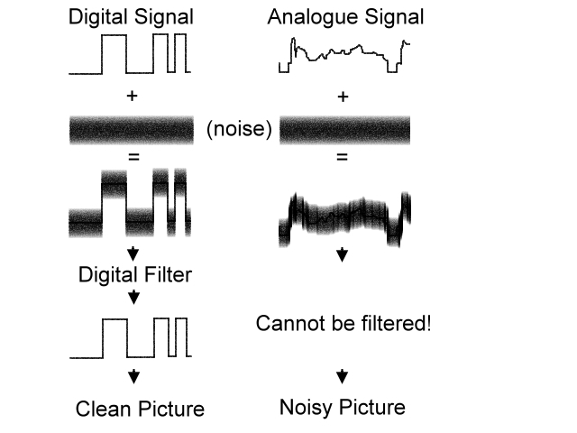 Before getting deeply engrossed in the studio, let’s first take a step back and see why digital signals are so much more robust than analogue ones. It all boils down to the ways signals may be degraded as they pass through circuits, cables and over the air.
