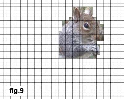 Look at fig.7 and fig. 8 which are actually adjacent frames from a video production, fig. 9 shows the difference between them which is all that would need to be sent to update the first picture to the second. In fact on a motionless picture it is theoretically possible to send just the first frame and an instruction to keep repeating it. In practise, this isn’t such a good idea though because in most scenes there are very minor variations in lighting and movement and if we just keep repeating the same data it quickly mounts up to an appreciable difference to the real picture. There is also a potential problem when a complete scene change occurs and all the squares in the previous frame suddenly become out of date and have to be renewed. To get around these problems, the image is treated in two ways, either it is a whole frame of information or it is an update frame that modifies the last image. Periodically, every few frames a new full frame is sent anyway so the image never becomes ‘stale’. If a scene change occurs, a new full frame is also sent, even if it isn’t due as part of the periodic refresh yet. This compression is called MPEG-1 but there are other variations, notably MPEG-2 which takes the concept of only updating parts where necessary one step further. With this method as well as looking at which regions differ from one frame to the next, it takes into account that many frames contain the same image but with parts of it moved to somewhere else in the picture. For example if the camera panned to the left, each frame would contain the same background detail but displaced slightly from its position in the previous frame.