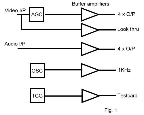 This article describes a device that provides the functions of a one-to-four way distribution amplifier for audio and video signals, a video level stabiliser and produces both a 1KHz test tone and video pattern generator.
