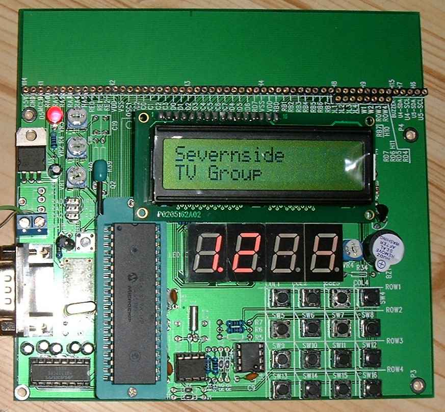 If you are confident that your program will work, you do not need a prototyping system. If like me you write programs that rarely work first time, prototyping can save hours of frustration and anger. Sometimes, no matter how many times you check and double-check your work, you overlook the simplest of things. Frequently this is because you did not predict what signal might be present on a chip pin or you didn’t appreciate a resistor was needed between a pin and the circuit it connected to. The only way to be absolutely sure is to build real hardware to try it out. The trouble is, you can easily get into a loop of hardware change causing a software change causing a hardware change again and so on. In order to try the design while still tweaking values and software, you need a method of rapidly building hardware in such a way that it can be modified easily, this is where prototype boards come to the rescue. They typically have a patch board area on which you build your circuit and link pins so you can connect to the PIC. Some have other devices on them to make it easier to hook-up some of the more commonly used circuits. Many prototyping boards are available but the one I chose for myself because of features and value for money is from a Hong Kong company called ‘Momentumfire’. Their board has a ZIF socket for a 16F877 processor, a 4x4 keyswitch array, a two-line LCD, four seven-segment LEDs, an RS-232 serial port for connecting to a PC, a buzzer, a real time clock chip (time of the day clock) and a memory chip. The memory is advertised as being an 8Kb device but my board came with a 32Kb device, perhaps I was just lucky! As well as the main board, a separate patch board was supplied, this uses spring contacts to connect component legs without needing to use solder. The board is type MFC-1027 from www.momentumfire.com/258.html and costs about £40. This is about half the cost of buying the parts alone in the UK but there may be some variation in price as exchange rates vary.